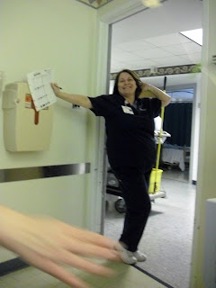 So...I always have the most interesting roommates o' all time! This time, her name was Linda. She was so silly. She was discharged to go home and was trying to get in contact with her "boyfriend".